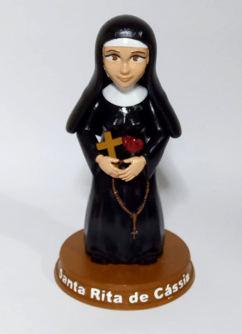 Santa Rita é uma das santas com maior número de devotos, por esse motivo não poderia deixar de fazer uma versão chibi dela, modelada no Blender em um estilo mais cartoon, disney e pixar. Trazendo uma releitura das entidades com mais fofura e carinho. Não adianta procurar é modelo exclusivo da 3D Etc & Tal, base impressa em FDM o restante em resina e pintado a mão.