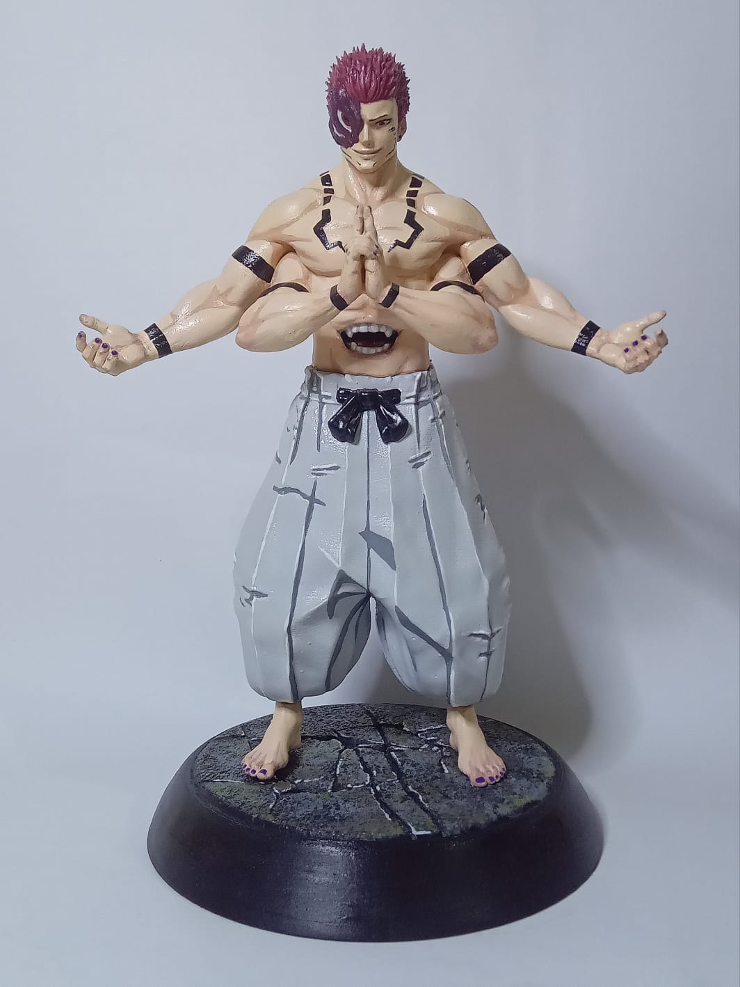 Figura de ação de personagem de anime, impresso em resina (corpo) e filamento (base). Com 31cm de altura, 18 de profundidade e 22,5 de largura com o peso de 373 gramas Com detalhes incríveis e pintura impecável. Perfeito para colecionadores!